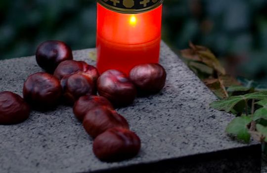Wir stellen Grablichter an dunklen Gräbern auf, damit auch in der Dunkelheit ein kleines Licht leuchtet.